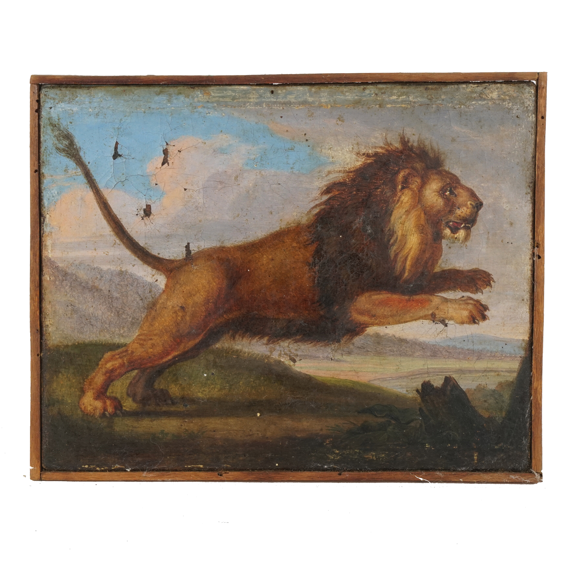 Pittore della fine del XVIII secolo Il leone olio su tela, cm. 18x22,5 (lievi...