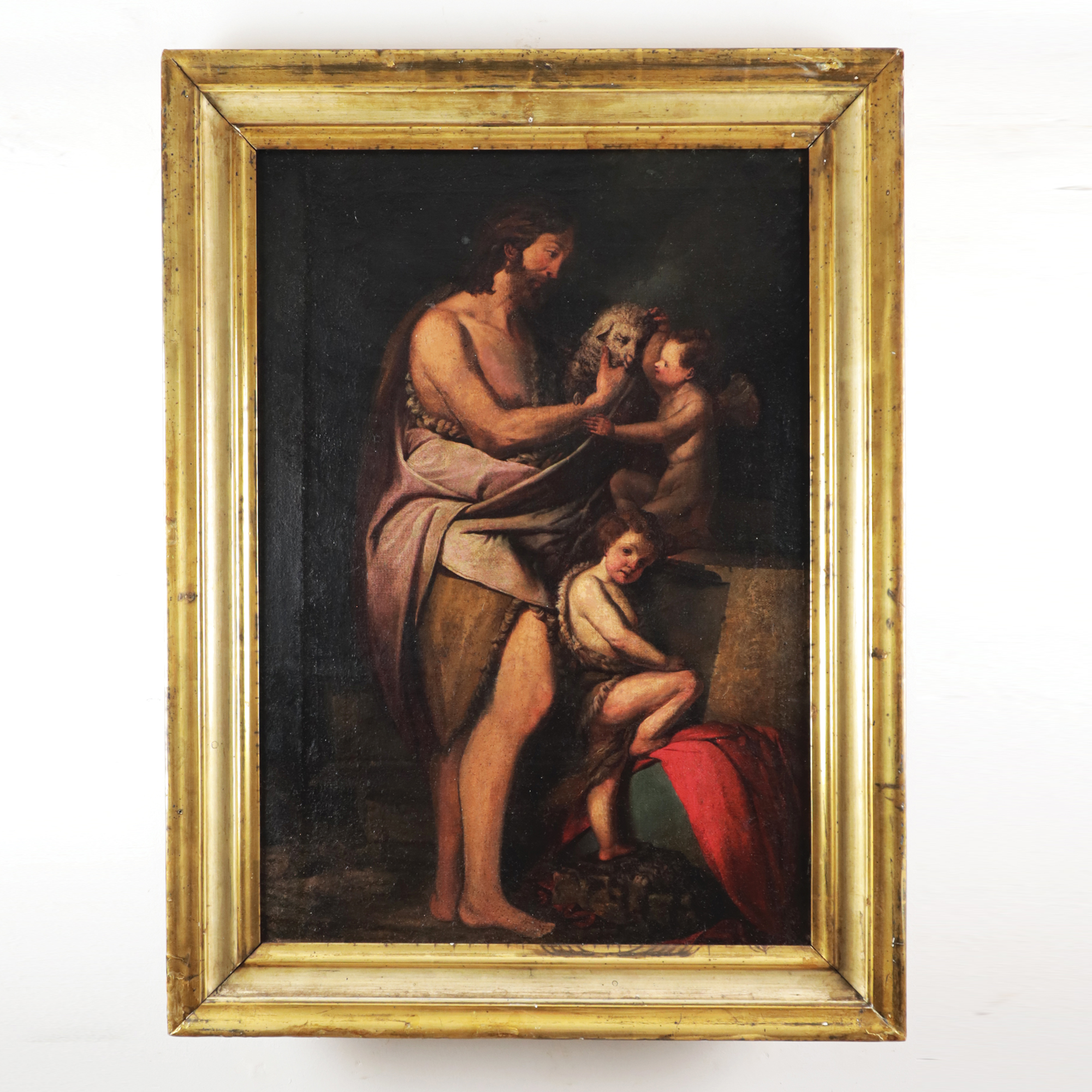 Pittore del XVIII secolo San Giovanni Battista con l'agnello olio su tela,...