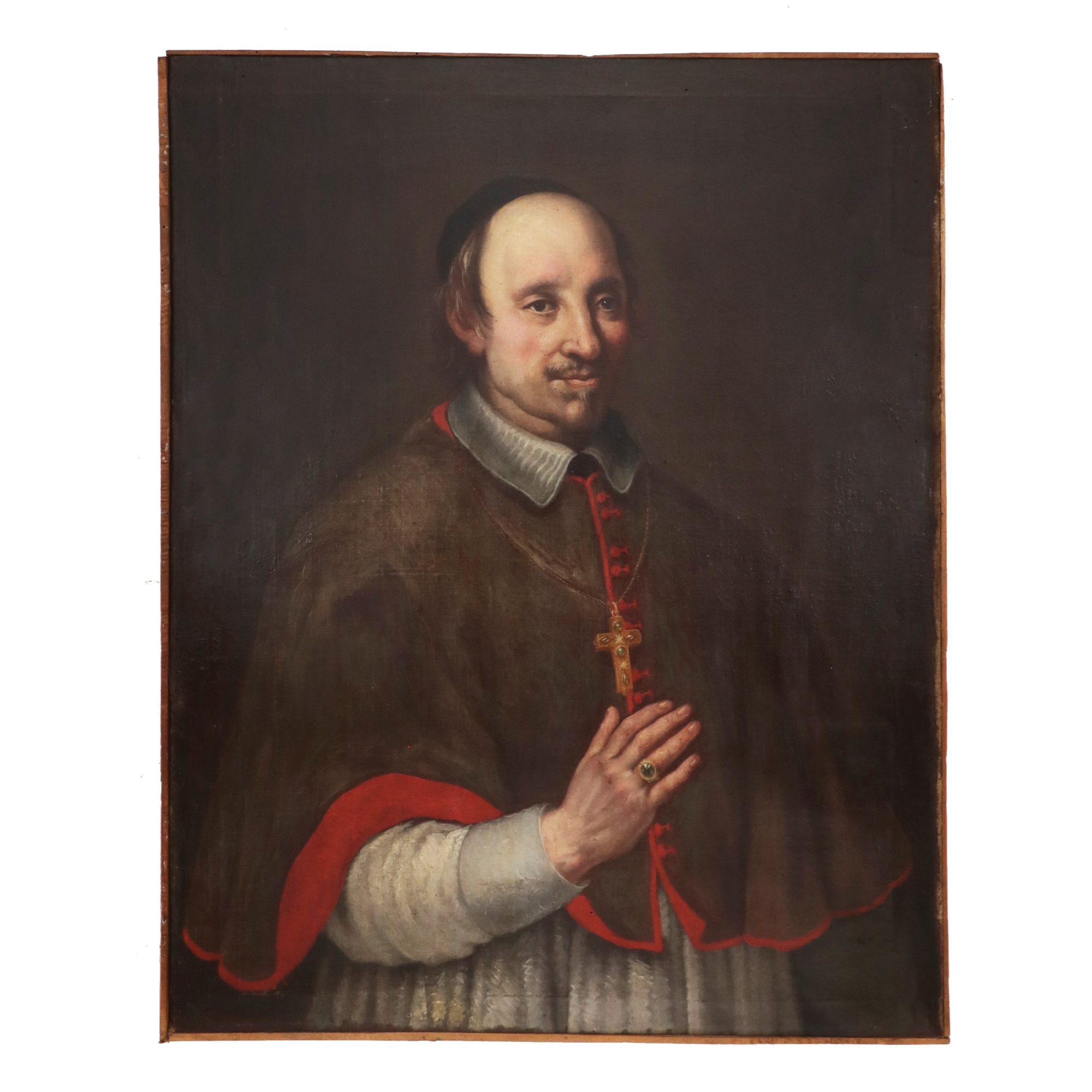 Pittore romano del XVIII secolo Ritratto di prelato olio su tela, cm. 84x67 A...