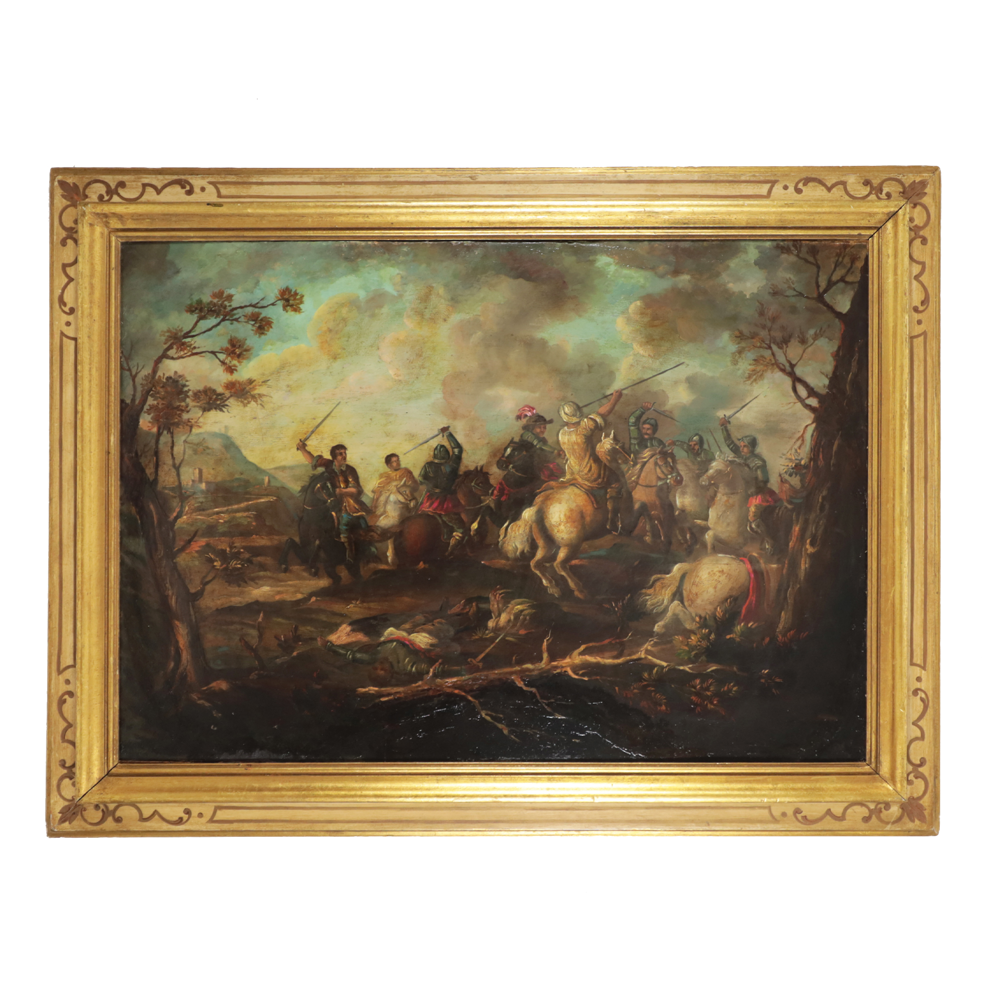 Pittore degli inizi del XX secolo Scena di battaglia olio su compensato, cm....