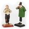 Coppia di piccole figure caricaturali in gesso policromo: una con la testa, l'altra con il busto mobili.
