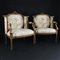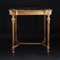 Divano UNITO a una coppia di poltrone e a un tavolino. Struttura in legno dorato e intagliato a motivi floreali e scanalature; il tavolino con piano di marmo nero venato.