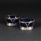 Coppia di saliere di forma ovale in argento sterling, con recipienti in opaline blu