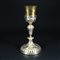 Calice in argento e argento dorato, inciso e sbalzato a motivi fogliati su fondo guilloché, h. cm. 24,5, peso gr. 345