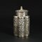 Tea caddy in argento a superficie sbalzata a raffigurare animali silvestri...