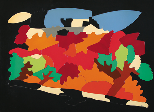UGO NESPOLO Mosso Santa Maria (Bi) 29/08/1941  Senza titolo (bozzetto) tecnica mista su cartone fustellato cm. 70x100, firma in basso a destra e al retro, dichiarazione d'autenticità dell'artista su foto.