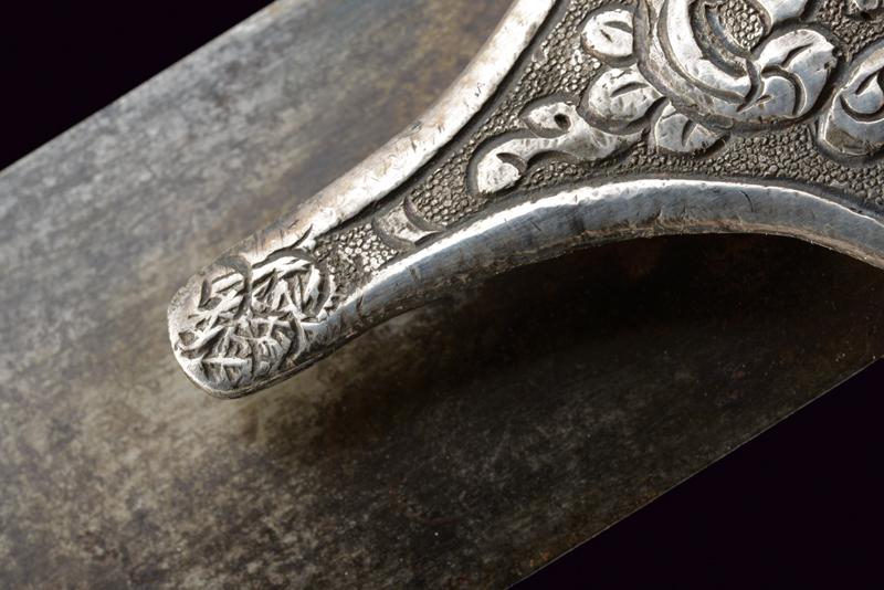 Shamshir con fornimenti in argento con decorazioni a tema militare