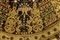 Magnifico scudo reale (Gasha), datazione: 1920 - 1930 provenienza: Etiopia, In cuoio di forma circolare, rilevato al centro, ricoperto di velluto marrone ornato da lamine e borchie cesellate in ottone dorato e con innumerevoli pietre in vetro colorato (alcune mancanze), che coprono quasi tutta la superficie. Il margine interno ricoperto con un fornimento circolare munito di rivetti in bronzo intagliati a fiore, il bordo esterno con bande orizzontali decorate en suite. Fra le doppie borchie due leoni di Giuda in ottone dorato, simbolo della casa reale d'Etiopia. All'interno una maniglia munita di corda e nappe e rivestimento in velluto bordeaux. Nonostante una ampia ricerca, non siamo riusciti a trovare un altro Gasha comparabile al nostro, di questa bellezza e con queste ricche decorazioni, in nessuna collezione o museo internazionali. diametro 45 cm.