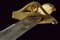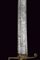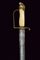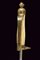 Interessante sciabola, datazione: Prima metà del XIX Secolo provenienza: Spagna, Lama curva a un filo e controfilo con ampio sguscio centrale e scanalatura dorsale, la base con iscrizione 'POR MI LEY Y POR MI REY' su entrambi i lati. Impugnatura in ottone con elso traforato e pomo con elmo piumato ed inciso. Impugnatura in corno di cervo. lunghezza 94 cm.