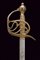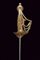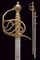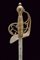 Spada da Guardia Nobile, datazione: Fine del XIX Secolo provenienza: Stato Pontificio, Lama dritta a un filo e controfilo con sgusciatura vicino al dorso, lungo tallone piatto. Fornimento in bronzo con resti di doratura con vela e rami di guardia, pomo sferico ed impugnatura massiccia a spire. Fodero in ferro (zone con ruggine) con fornimenti in ottone e due anelli di sospensione. lunghezza 101 cm.