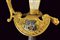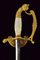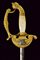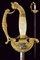 Spadino da funzionario, datazione: XIX Secolo provenienza: Venezia, Lama di sezione esagonale. Fornimento in ottone dorato, pelta con leone di S. Marco in argento su frode di quercia e alloro e fra due teste di leone. Ramo di guardia con testa di leone, pomo con volto. Guancette in madreperla. Senza fodero. lunghezza 95 cm.