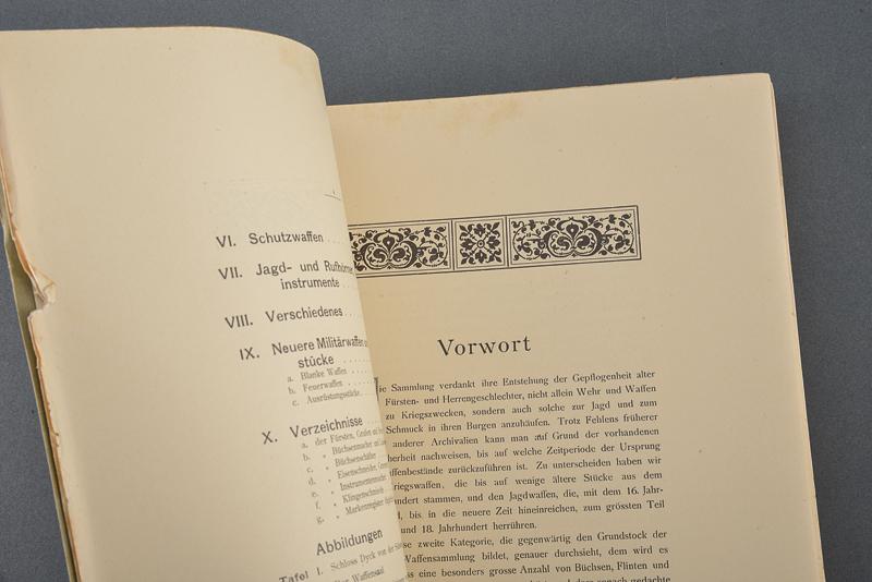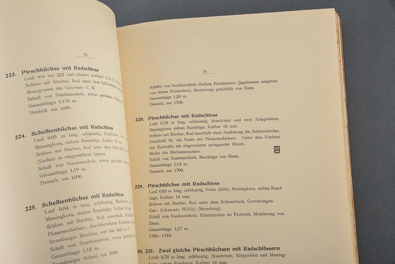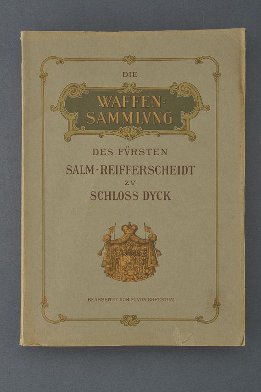 Ehrenthal, M. v., datazione: provenienza: Germania, 'Die Waffensammlung des Fürsten Salm. Reifferscheidt zu Schloss Dyck'; Druck B. Kühlen, Mönchengladbach, 1906. 222 pagine con sei tavole e punzoni. In tedesco. Copertina originale. Paperback. Raro. altezza 30.5 cm.
