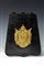 Sabretache, datazione: Metà del XIX Secolo provenienza: Francia, In cuoio verniciato nero con splendido stemma dorato a fuoco. Modello alleggerito per ufficiale del prestigioso Reggimento dei ' Cacciatori a Cavallo della Guardia'. dimensioni 26 x 33 cm.