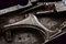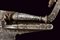Elegante batteria a ruota da fucile, datazione: Prima metà del XVII Secolo provenienza: Brescia, Cartella piatta con bordi cuspidati. La ruota esterna incisa con fregio a racemi e fiori e tenuta da una ghiera intagliata a fingere il tortiglione. Lo scodellino faccettato e inciso a foglie. Anche il profilo della molla con intagli a foglie. Il cane con collo a balaustro, ornato a foglie d'acanto in rilievo, dal quale parte il secondo segmento del collo, angolato, che regge le ganasce (quella superiore con mancanza al bordo). Anche sul collo piccole incisioni a racemi. Il retro con elementi della meccanica parzialmente delineati e incisi en suite con racemi e fiori. lunghezza 28,5 cm.