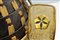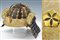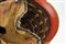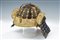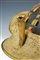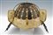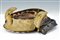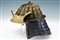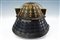 Raro Tatami Kabuto, datazione: Periodo Edo (1603-1867) provenienza: Giappone, Coppo in ferro a 5 lame a lacca bruna allacciate in seta arancione (danneggiata), hineno shikoro a 5 lame allacciate in Kon - ito sugake odoshi, mabizashi rivestito in pelle impressa e grandi fukigaeshi con mon dorati. Interno con cuffia originale in cotone trapuntato. Esemplare di bella qualità di questo particolate tipo di Kabuto pieghevole, usualmente meno elaborato. altezza 28 cm.