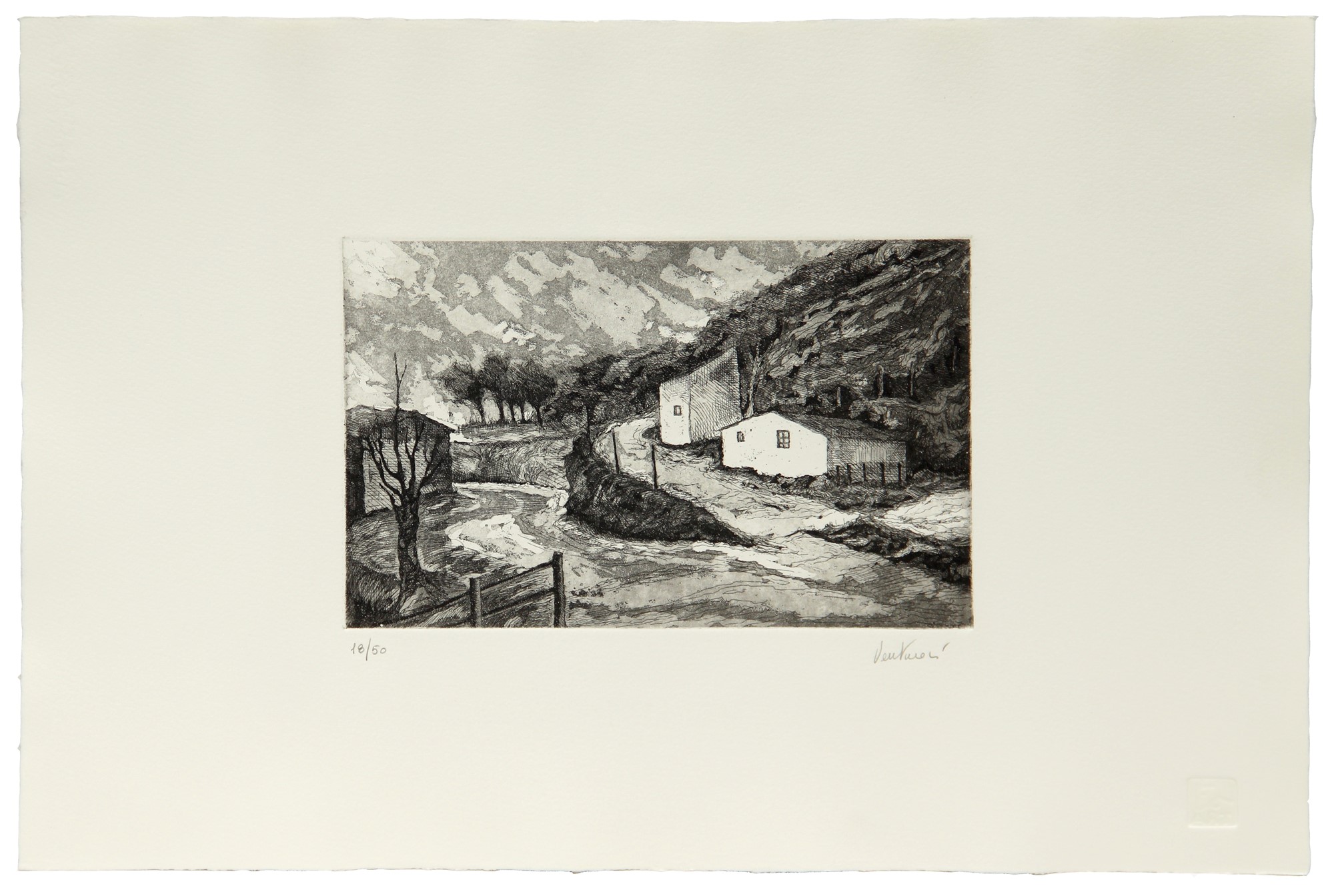 Roberto VENTURONI, Le stallette, 1986, acquaforte e acquatinta, cm. 15.6x24.3