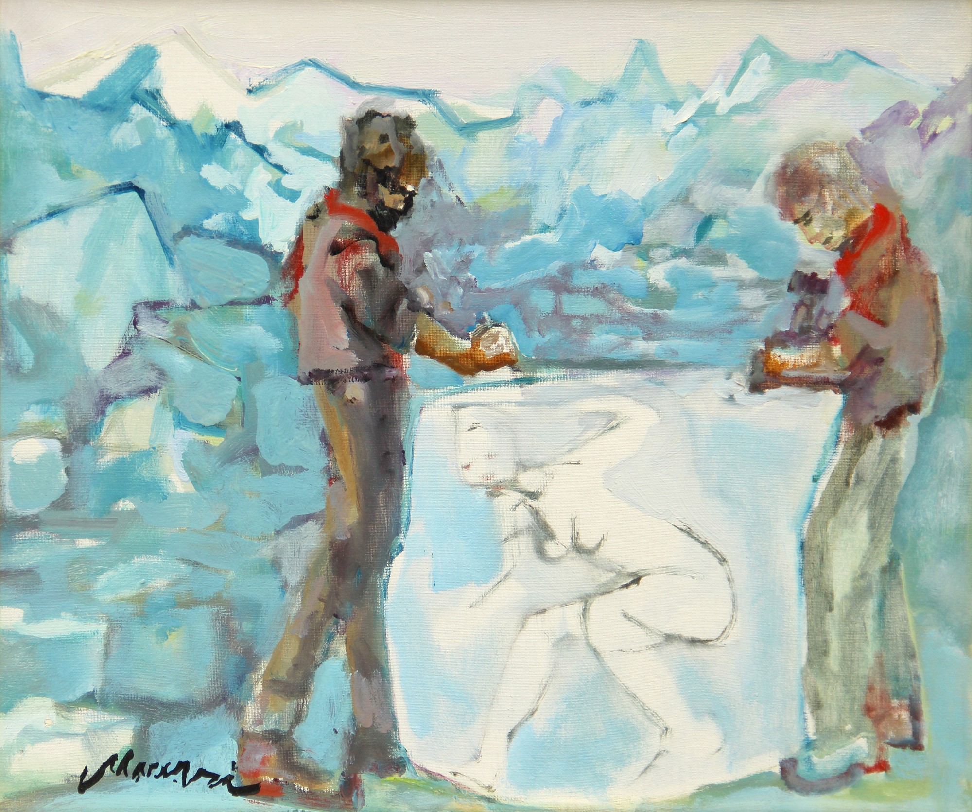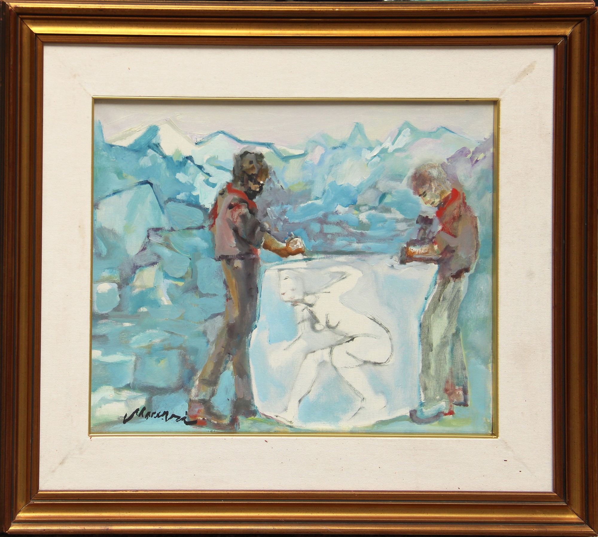 Mino MACCARI, Lavatori, anni 50, olio su tela, cm. 40x50