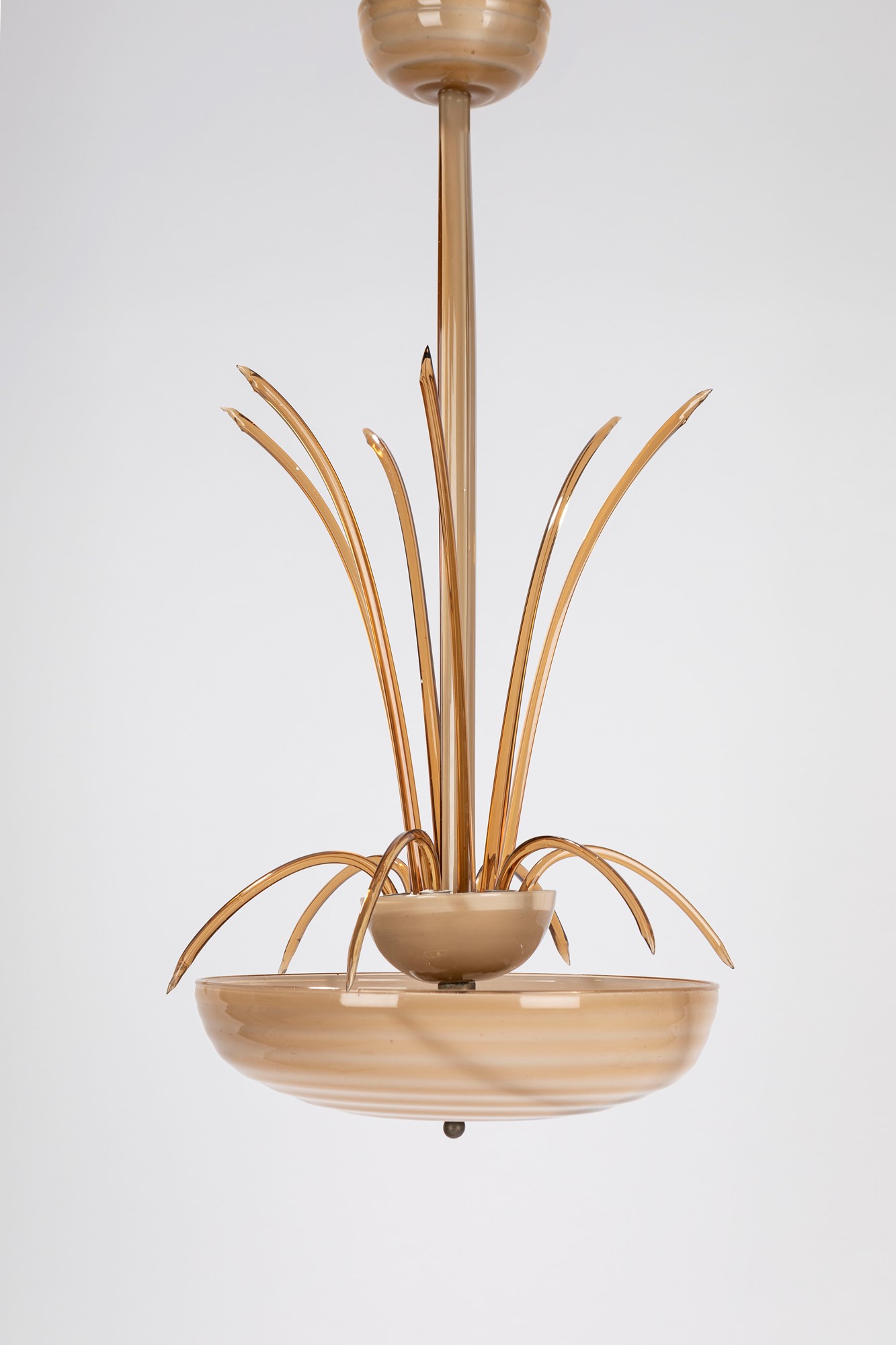 Napoleone Martinuzzi (attr.) - LampadarioH 80 cm x diam 30 cm in vetro soffiato con foglie in vetro e particolari in ottone.