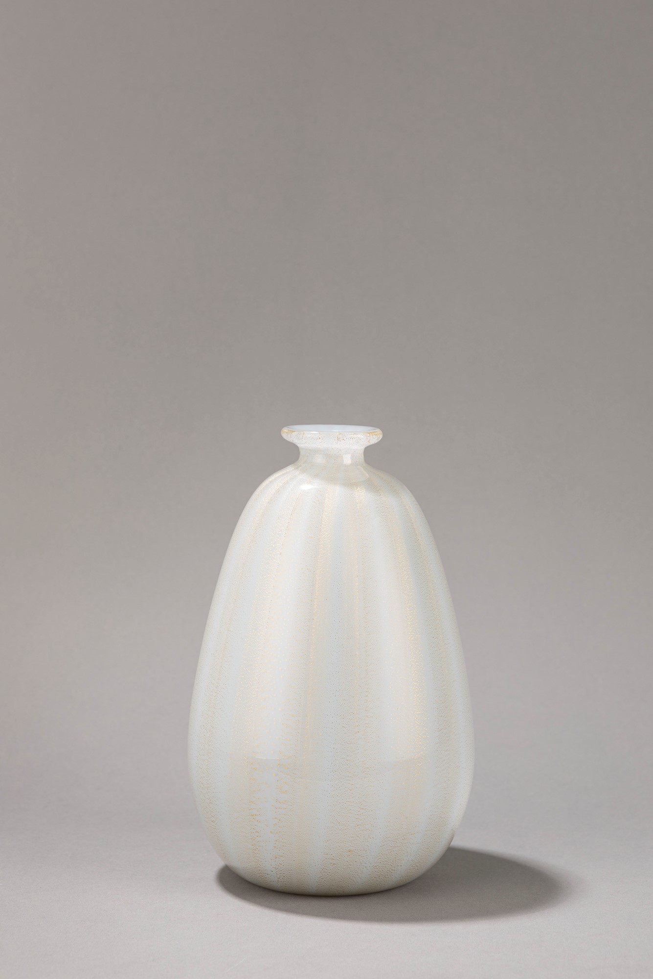 Archimede Seguso - Vasoh 22 x 13 cm in vetro soffiato con costolature ad avventurina.