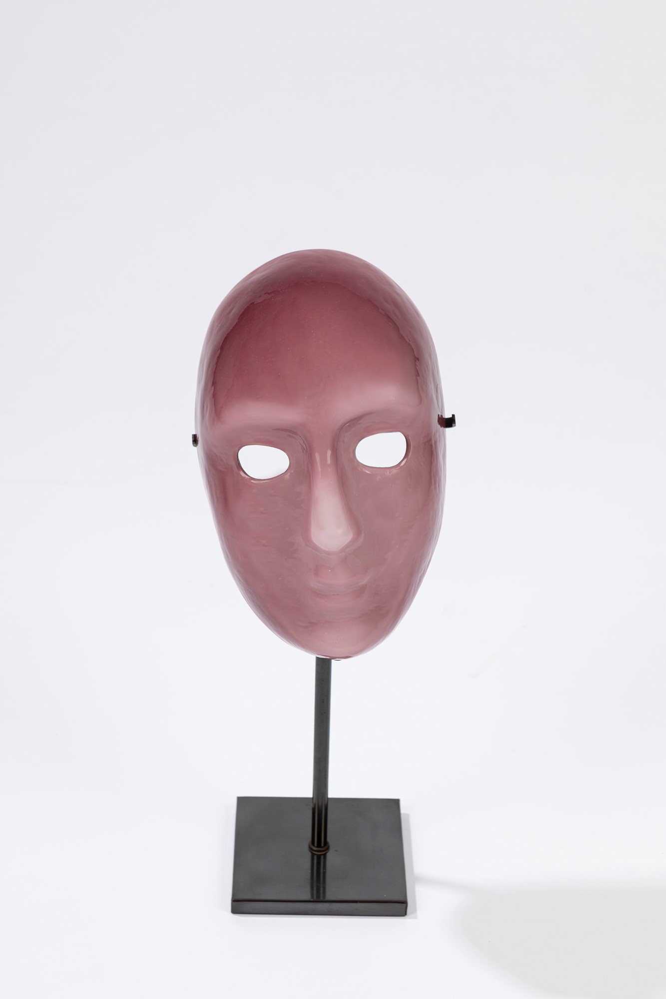 Venini - MascheraCm 23 x 14 cm in vetro incamiciato bianco opalino e trasparente di colore melanzana, completa di supporto metallico.