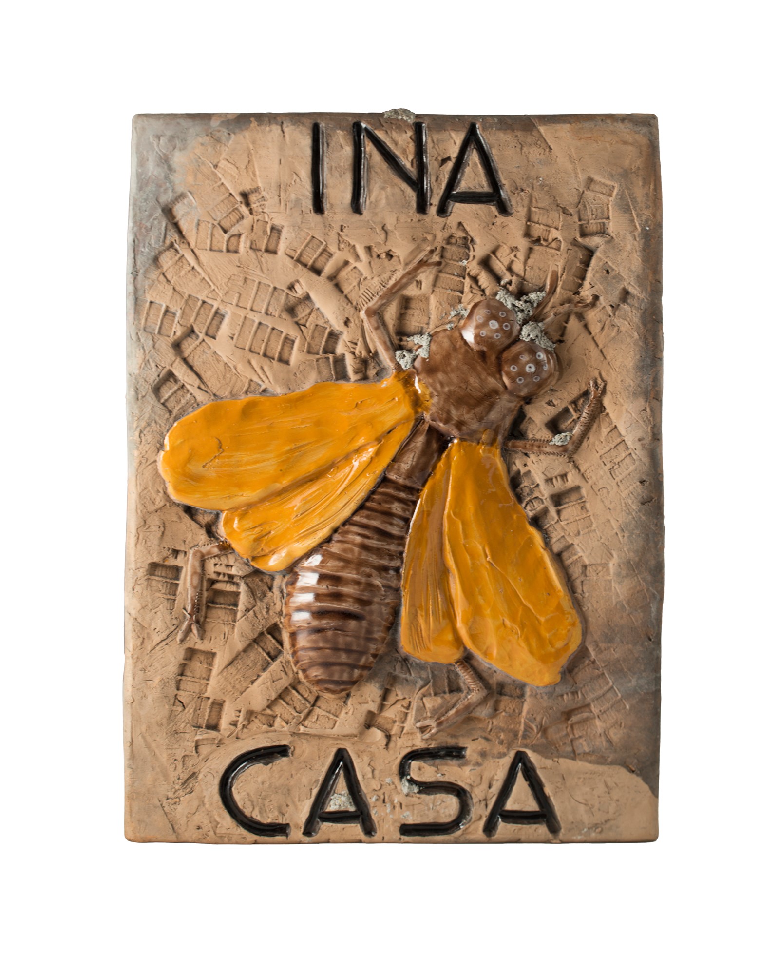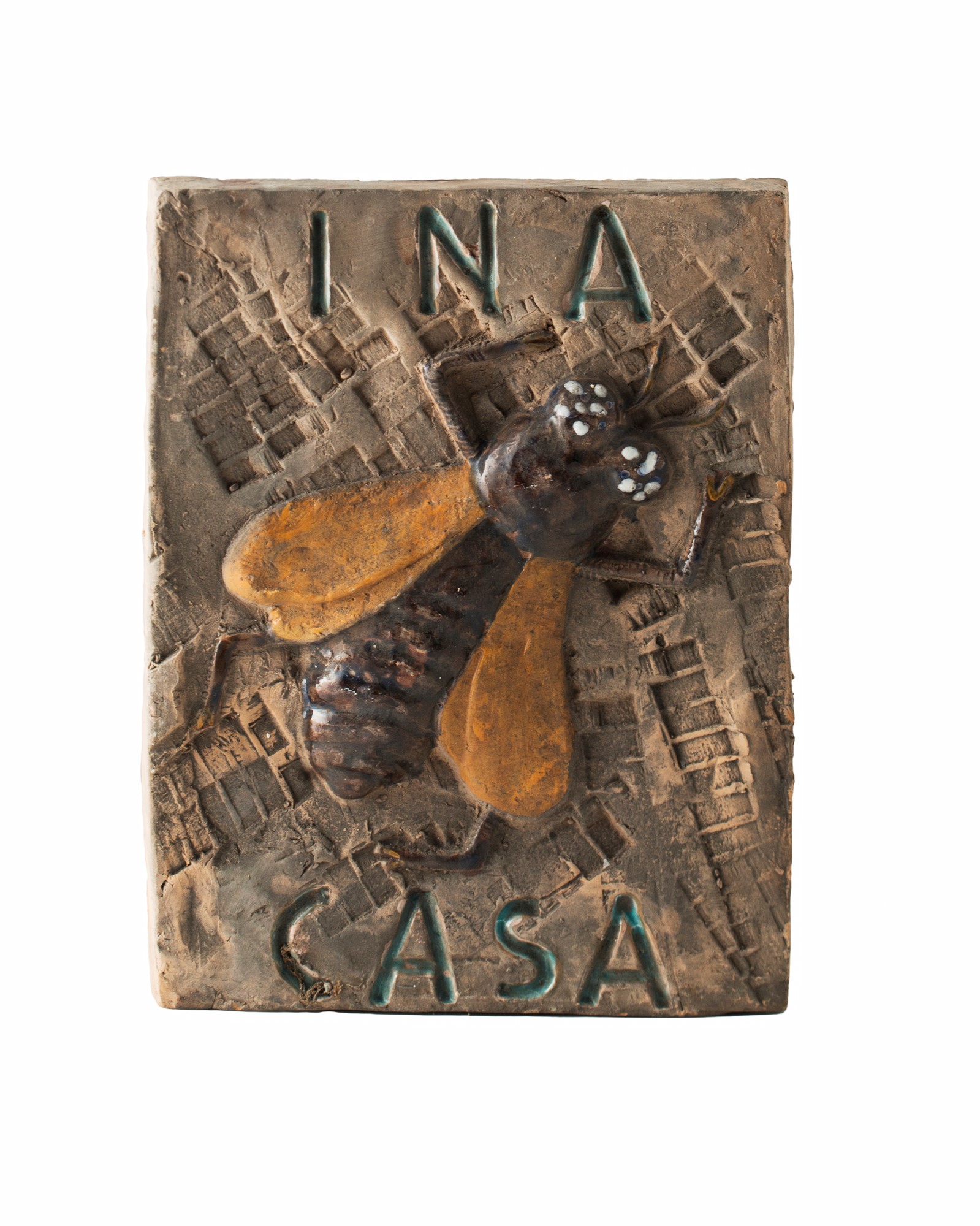 INA Casa - Due mattonelle decorativecm h 45x32x4/h 25x19x3 in ceramica lavorata.