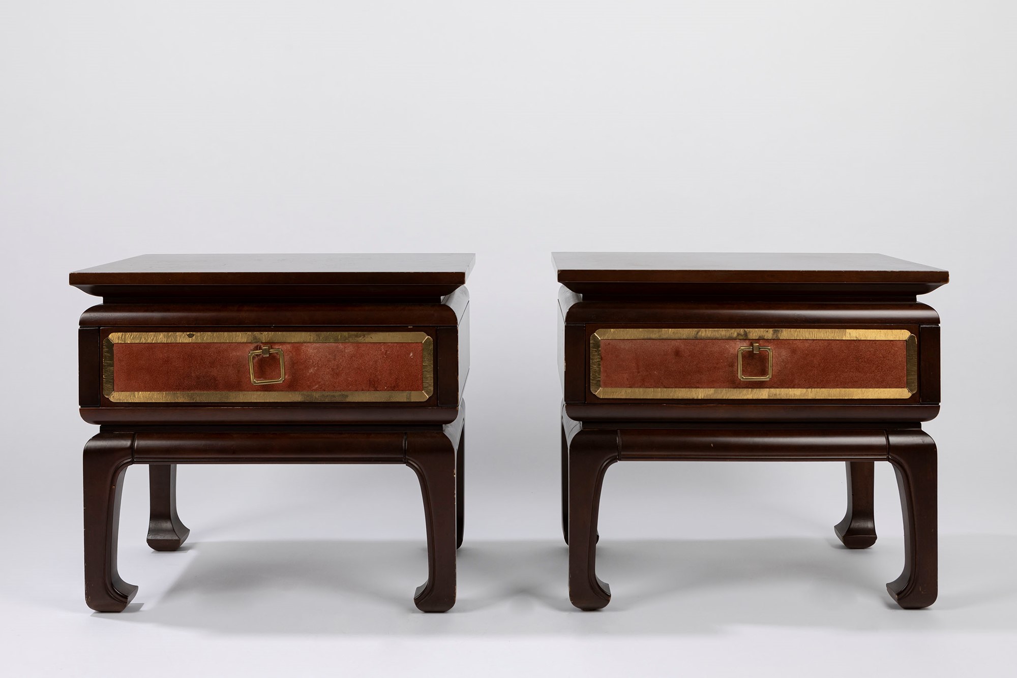 Luciano Frigerio - Due comodini mod. Fior di Lotoh 51 x 40 x 58 cm in legno laccato e particolari in ottone.