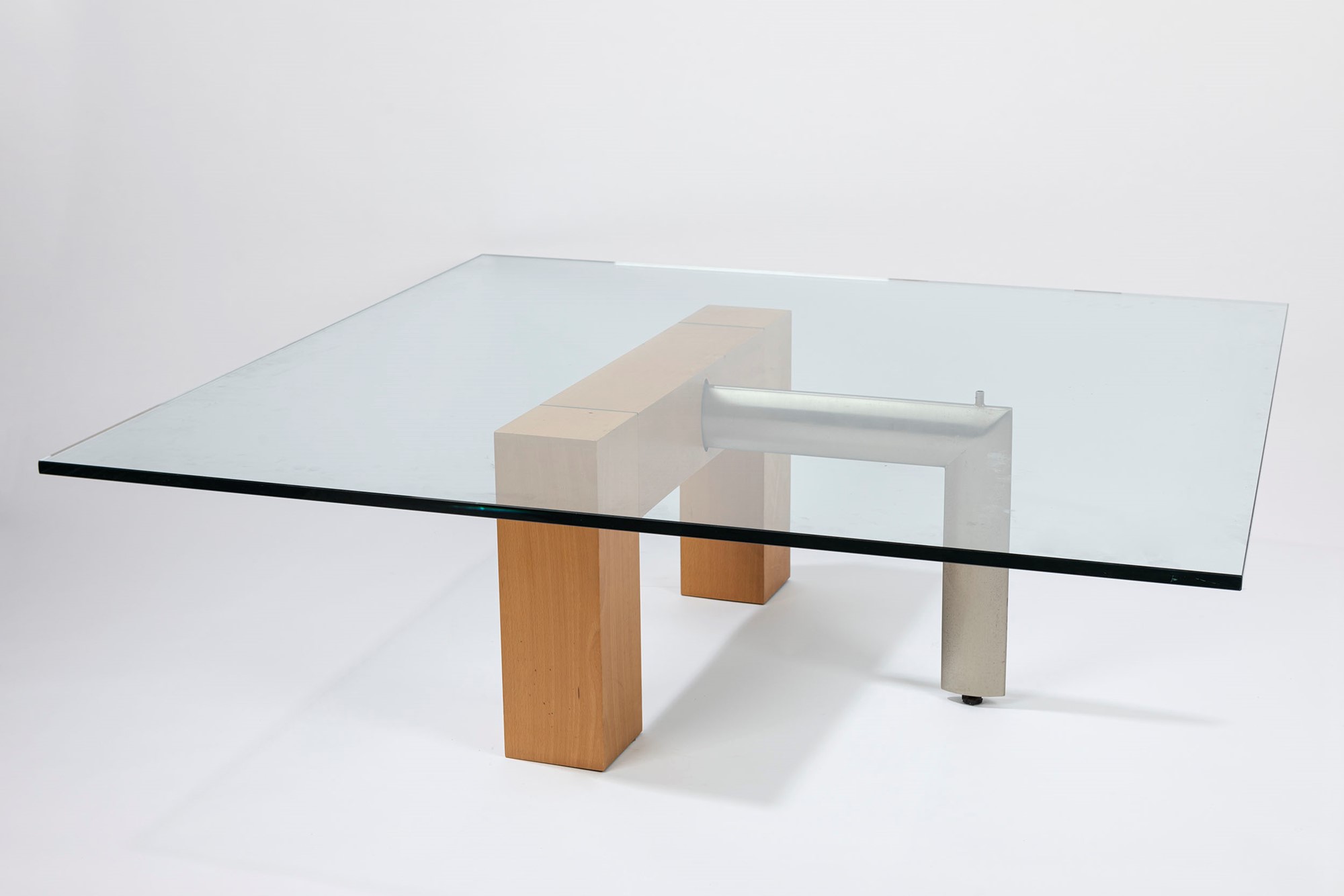 Daniela Puppa - Tavolino ErcolinoH 39 x 120 x 120 cm in vetro, legno e metallo. Modello 2814.
