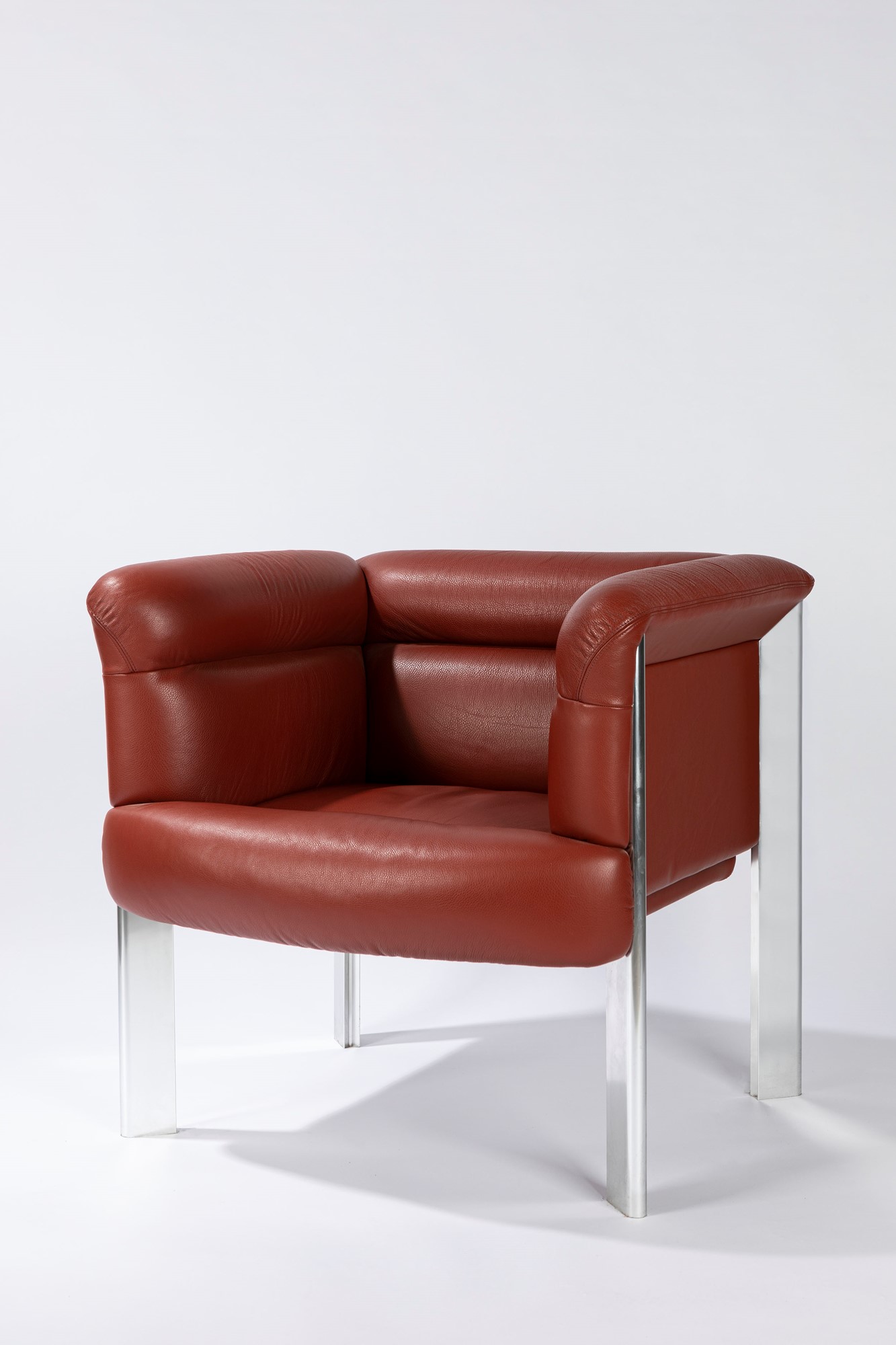 Marco Zanuso - Poltrona mod. Interludecm 74x75x71 in metallo e pelle. Marchio del produttore.