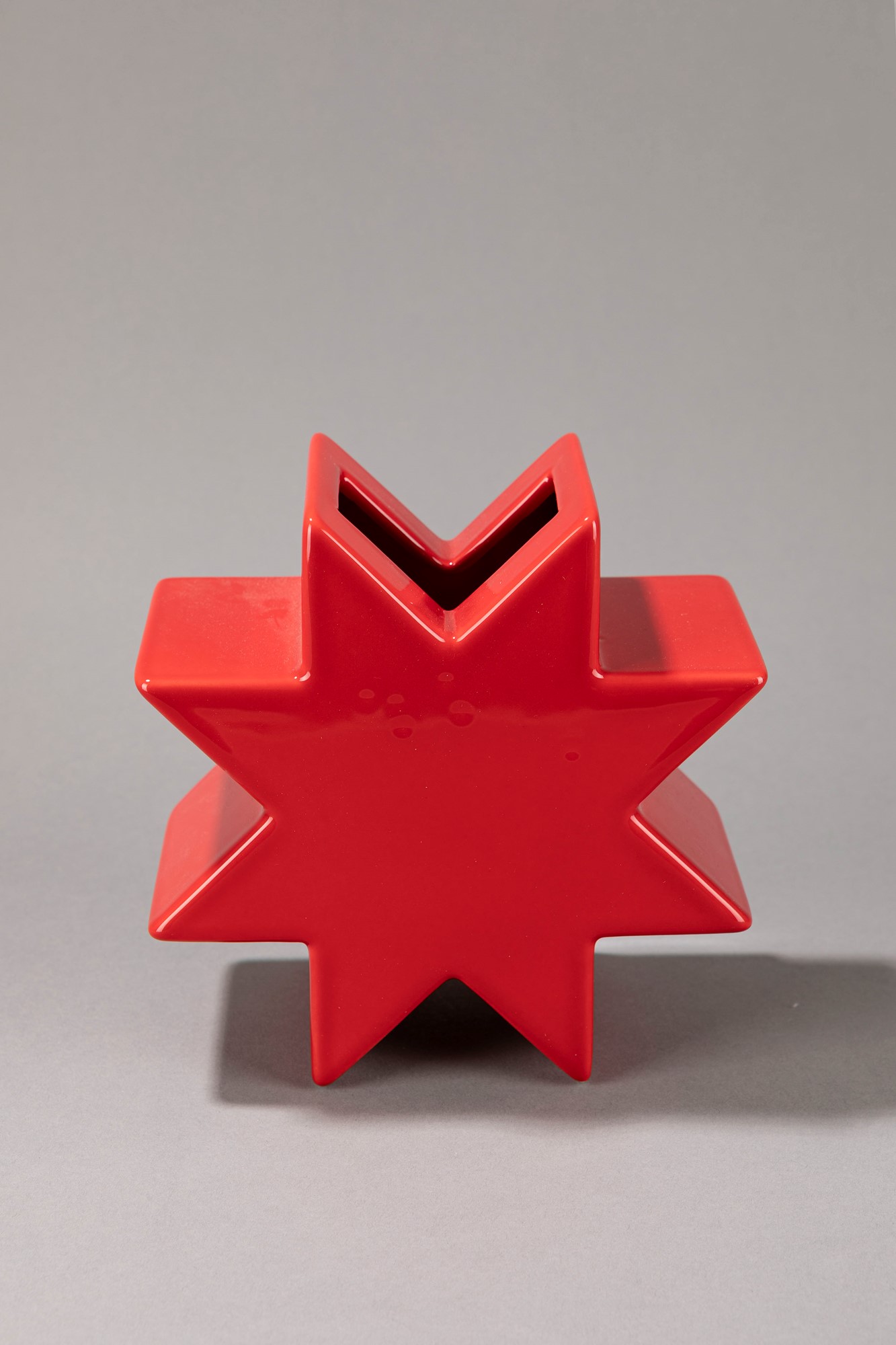 Ettore Sottsass Jr - Vaso Hsing17 x 10 x 12 cm in ceramica smaltata rossa a forma di stella.