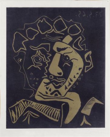 Pablo Picasso (Malaga, 1881 - Mougins, 1973) Le Danseur, 1965 Linoleum a colori, mm. 730x590 (foglio); mm. 638x528; es. 112/200 Firma in basso a destra, numerata in basso a sinistra Bibliografia: G. Bloch , Catalogue de l’Oeuvre Gravè et Lithographiè, Kornfeld, Berna 1977, Vol. II 1966-1969 , n° 1849 pag. 342; B. Baer, Picasso Peintre Graveur, Tomo V e Addenda, n° 1360 pag. 358 (Tomo V) e pag. 80 (Addenda)