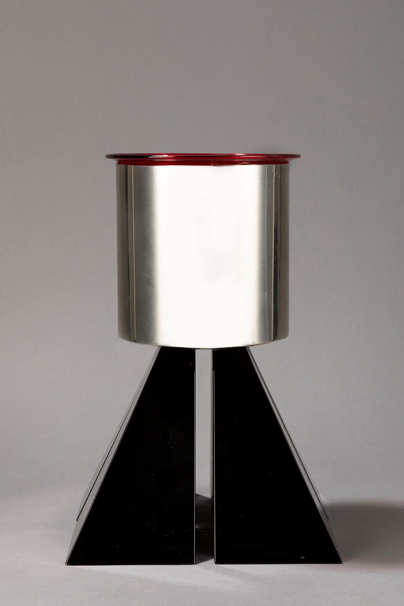 Ettore Sottsass Jr - Vaso ArchimedeH 27 cm, diam 15 cm, base 19 cm in ferro, vetro e acciaio.