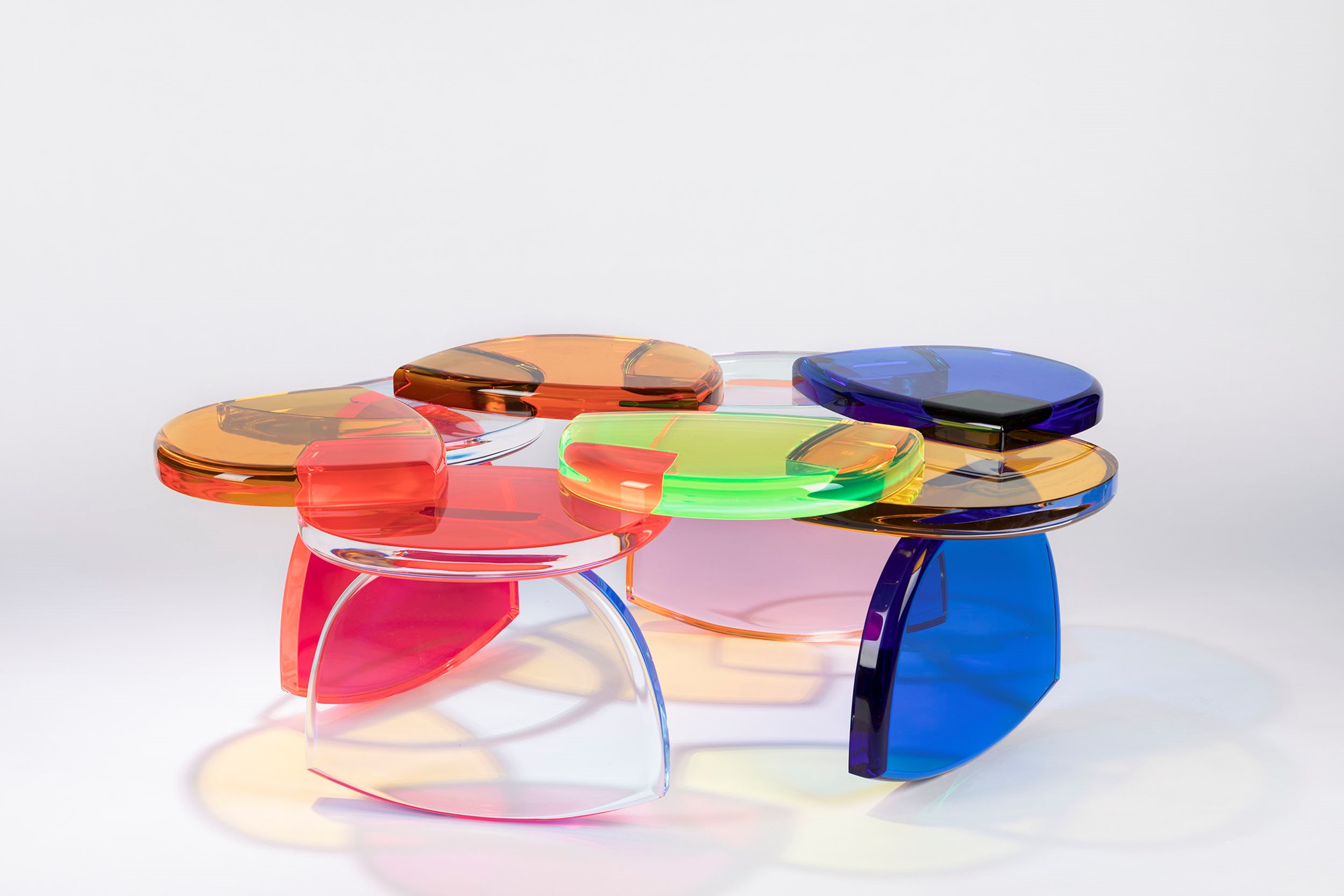 Studio Superego - Tavolino Bon BonH 42 cm x 116 x 84 in plexiglas colorato disegnato e prodotto da Studio Superego.