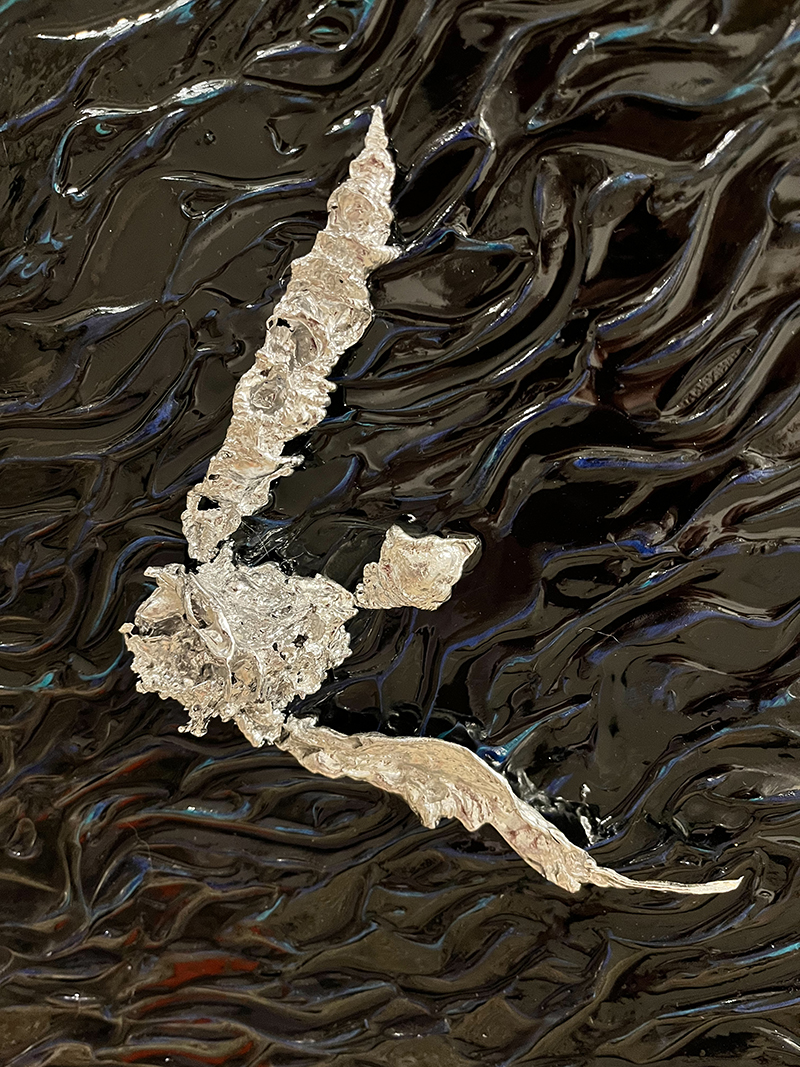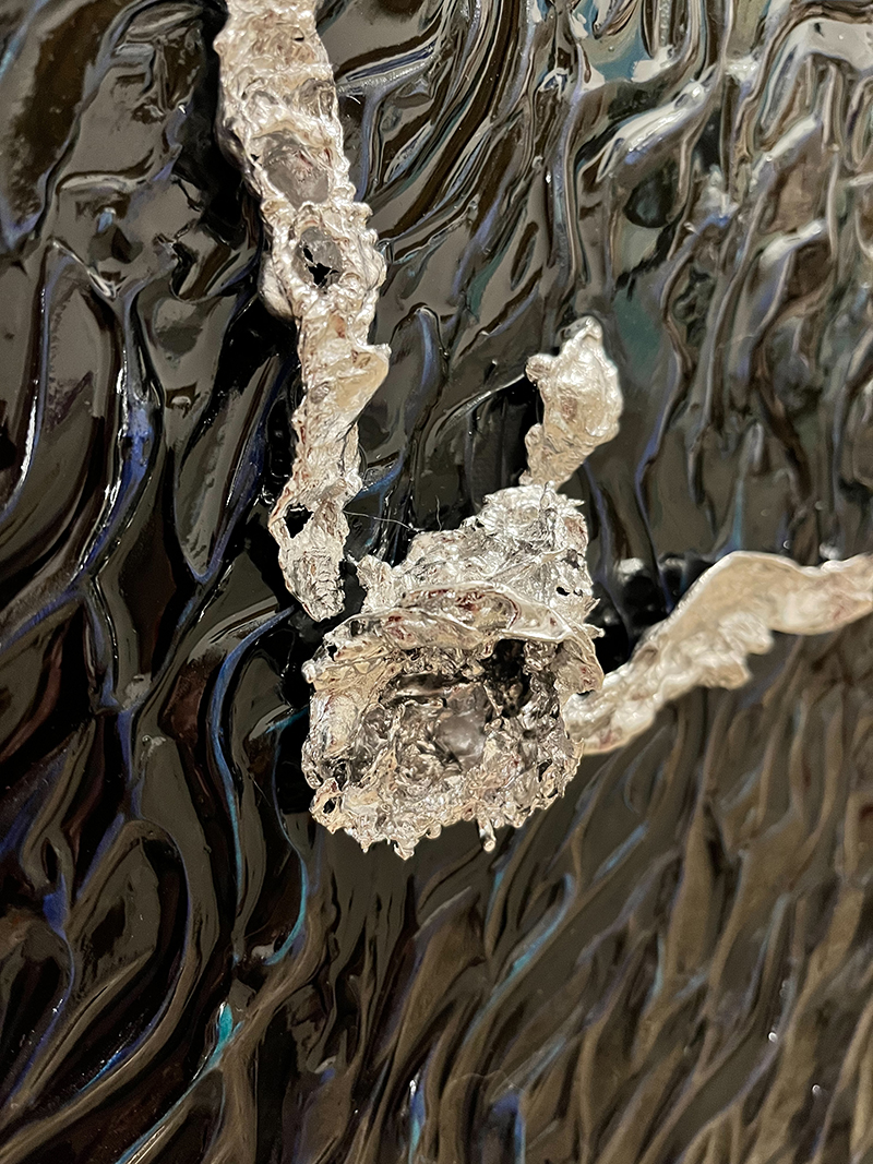 Scultura in metallo su telaio dipinto in acrilico 3d