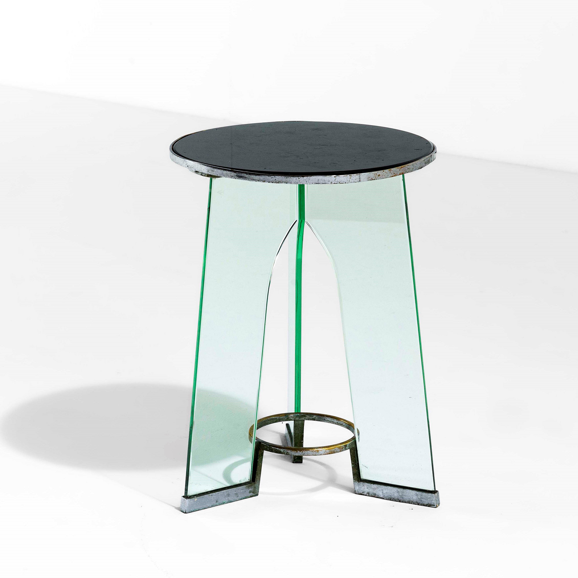 Gio Ponti, Tavolo basso in vetro temprato, piano in vetro opalino nero, sostegni e particolari in ottone cromato., Prod. Fontana Arte, Italia, 1932, W. 31 - D. 31 - H. 41 Cm