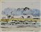 Orfeo Tamburi (Jesi, 1910 - Parigi, 1994) Paesaggio, 1974 Acquerello su carta riportata su cartone, cm. 24x31 Firma in basso a destra, data in basso a sinistra. Sul verso: timbro Galleria d'arte Ghirlandina, Modena. Autentica dell'autore su foto. Provenienza: Galleria Gioacchini, Ancona.