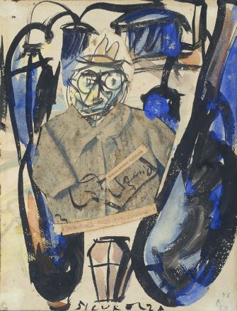 Enzo Pregno (Alessandria d'Egitto, 1898 - Firenze, 1972) Sicurezza, 1946 Tecnica mista e collage su carta, cm. 31,5x24 Firma e data in basso a destra.