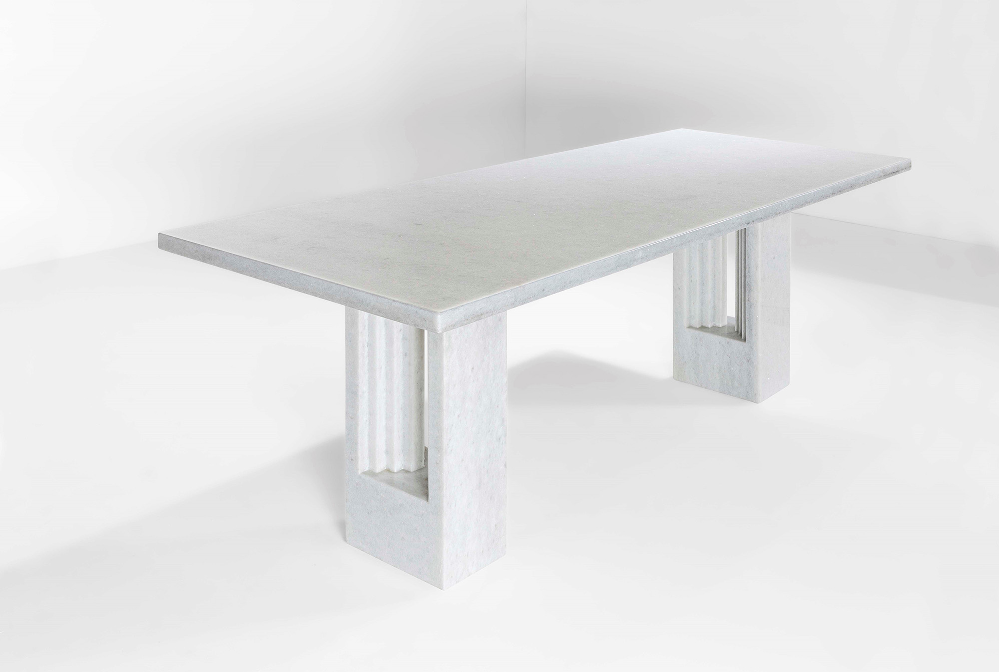 Carlo Scarpa e Marcel Breuer, Grande tavolo mod. Delfi con struttura in marmo., Prod. Simon Gavina, Italia, 1969, W. 220 - D. 89 - H. 74 Cm, Bibliografia, Catalogo di produzione