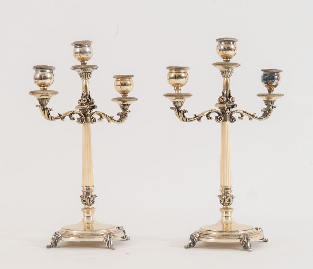 PERUGGIA & C., Alessandria, XX secolo. Coppia di candelabri di pregiata...