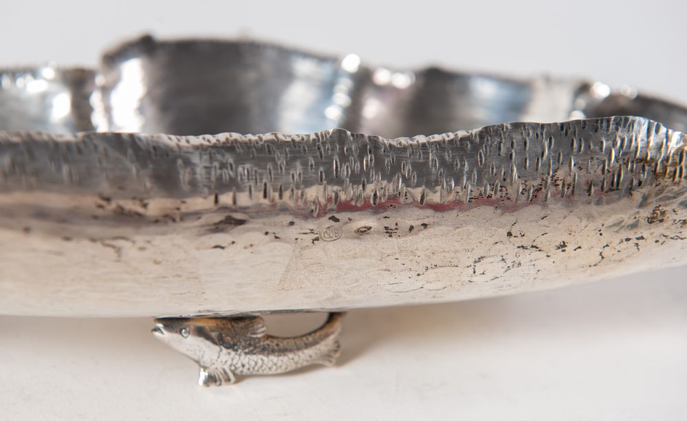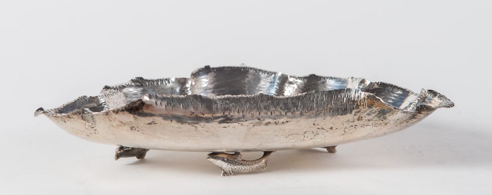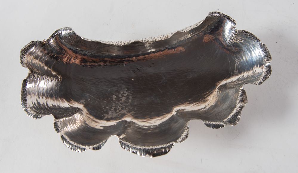 ITALIA, XX secolo. Svuotatsche in argento 800 a forma di conchiglia con piedi...