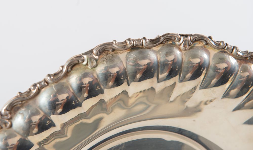 ITALIA, XX secolo. Alzatina. sul bordo superiore reca punzoni: 800 e losanga locativa non identificata. Cm 5x Ø 32. Peso: 455 gr.