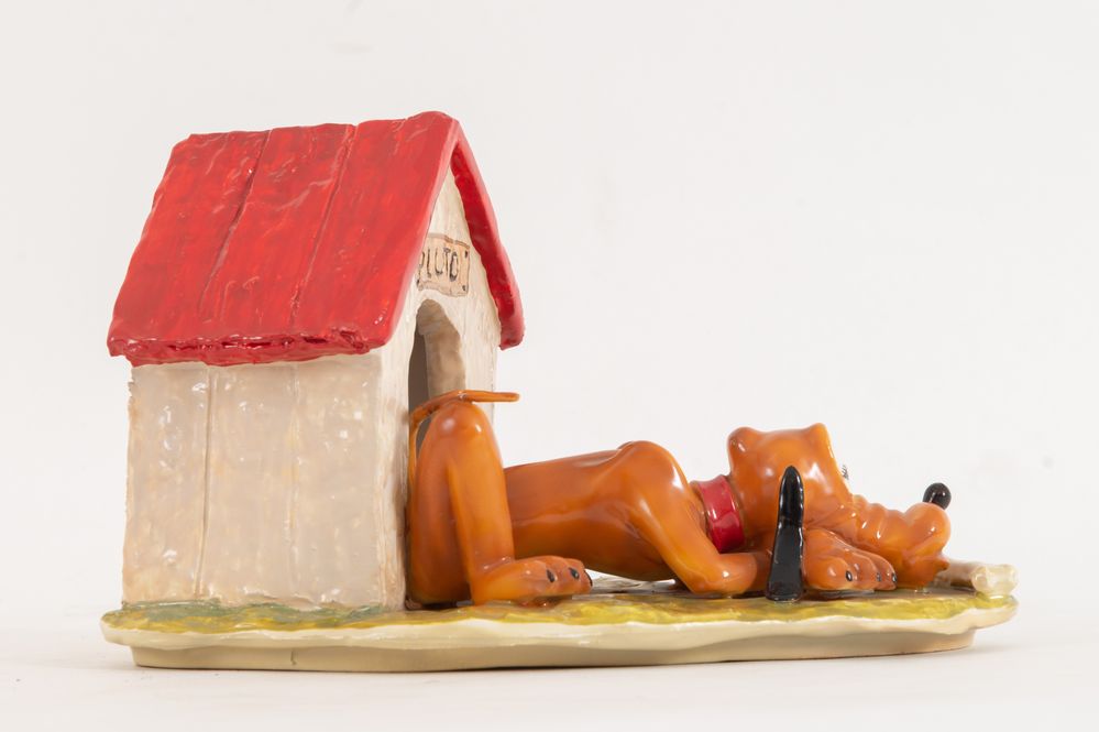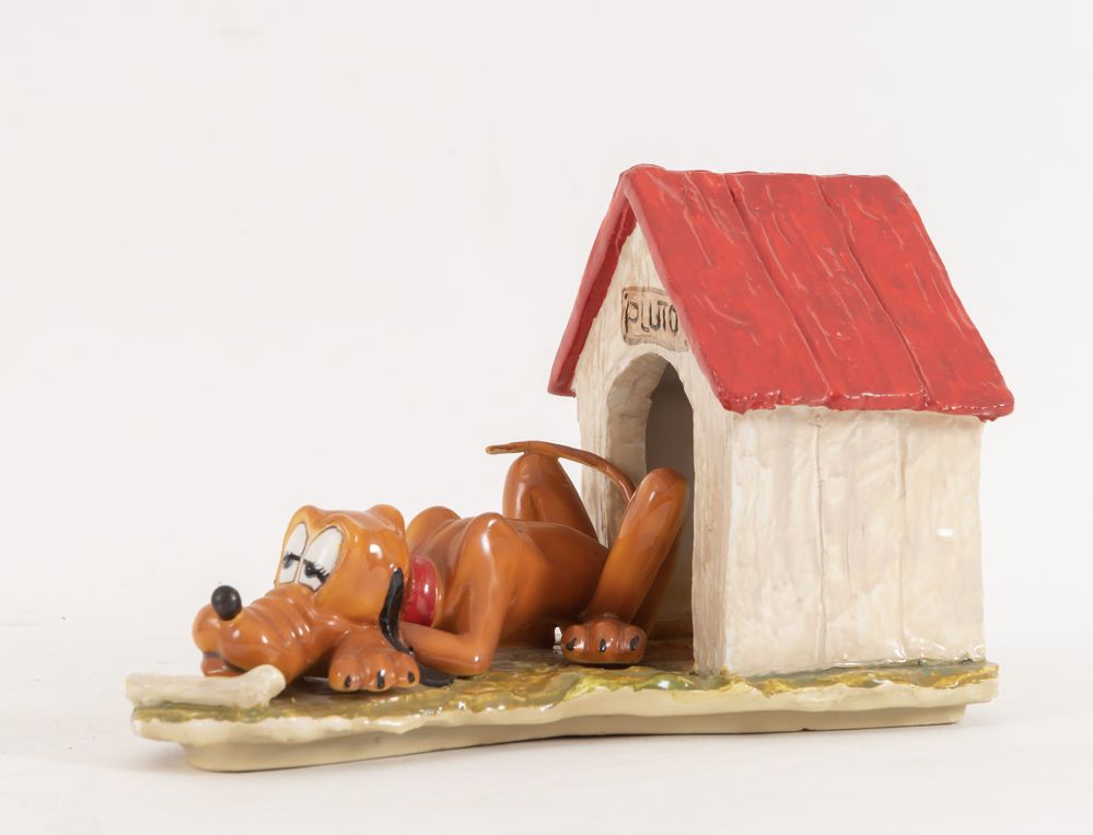UGO ZACCAGNINI (1868-1937), attr. "Pluto". Scultura in ceramica smaltata. Cm 18x24,5x15,5. Sotto la base reca sigla e incisione Walt Disney Production. (Difetti)