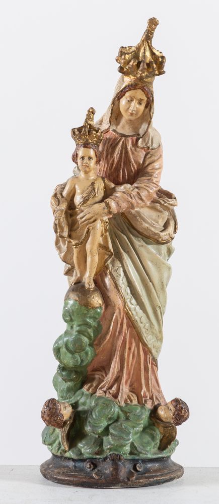 "MADONNA CON BAMBINO". Scultura in gesso policromo. Nord Italia, fine XIX -...