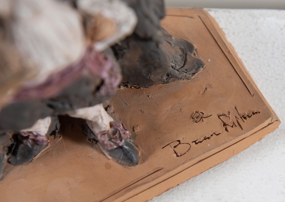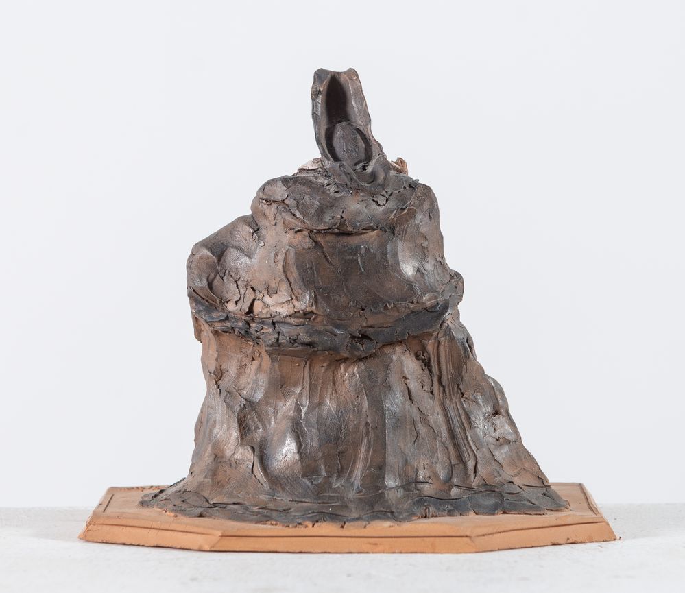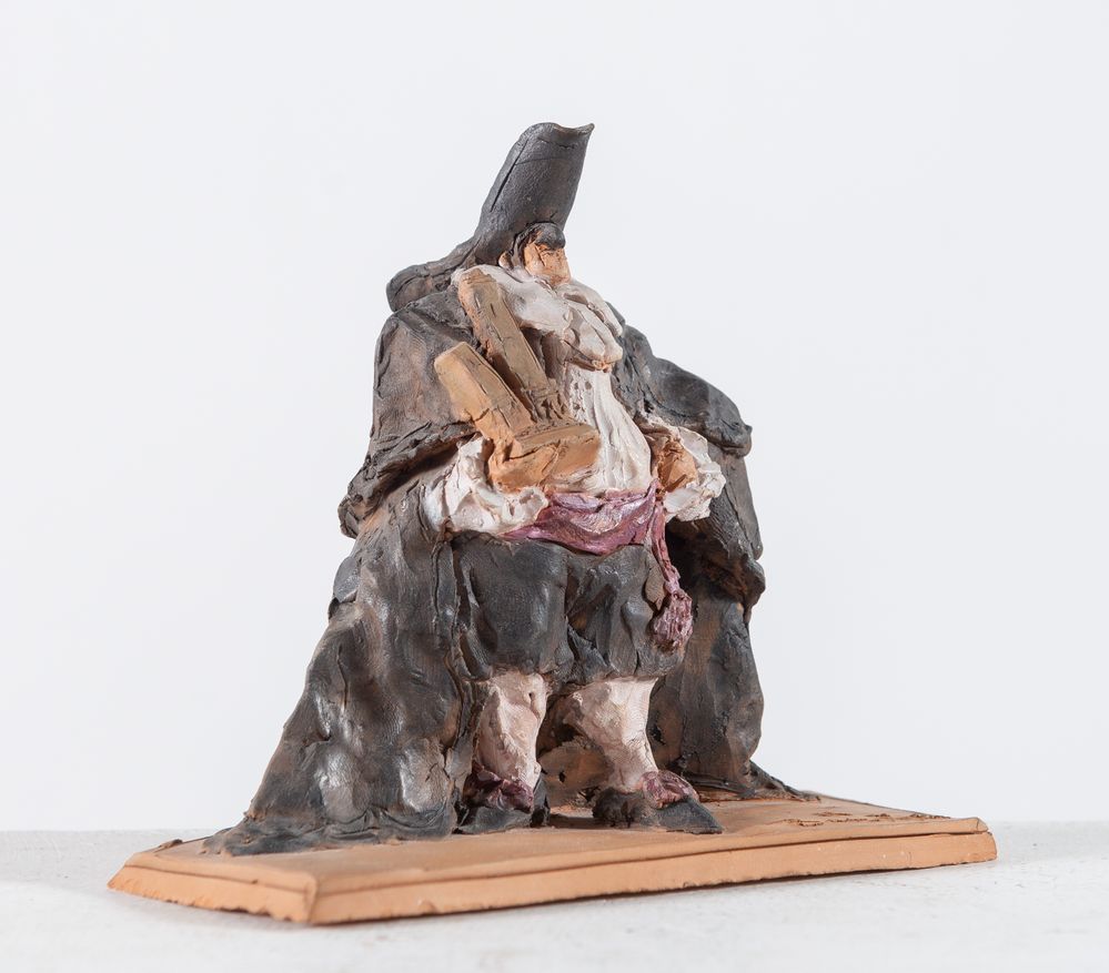 BRUNO RIGHINI (XX secolo) "Balanzone". Scultura in terracotta policroma. Opera siglata e firmata sulla base B.R. Bruno Righini. Cm 15x16x10.