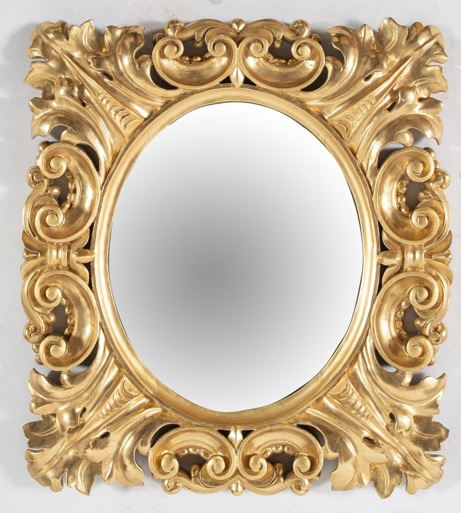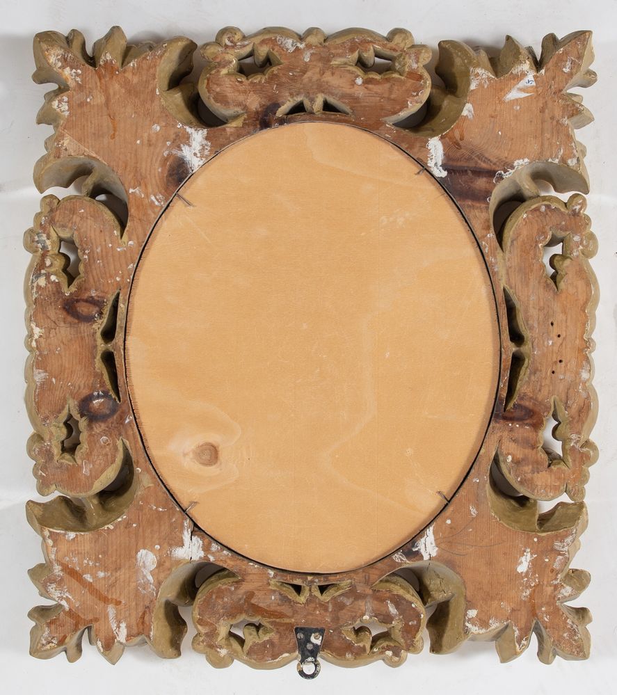 SPECCHIERA con cornice in legno intagliato e dorato. Cm 57x51,5.