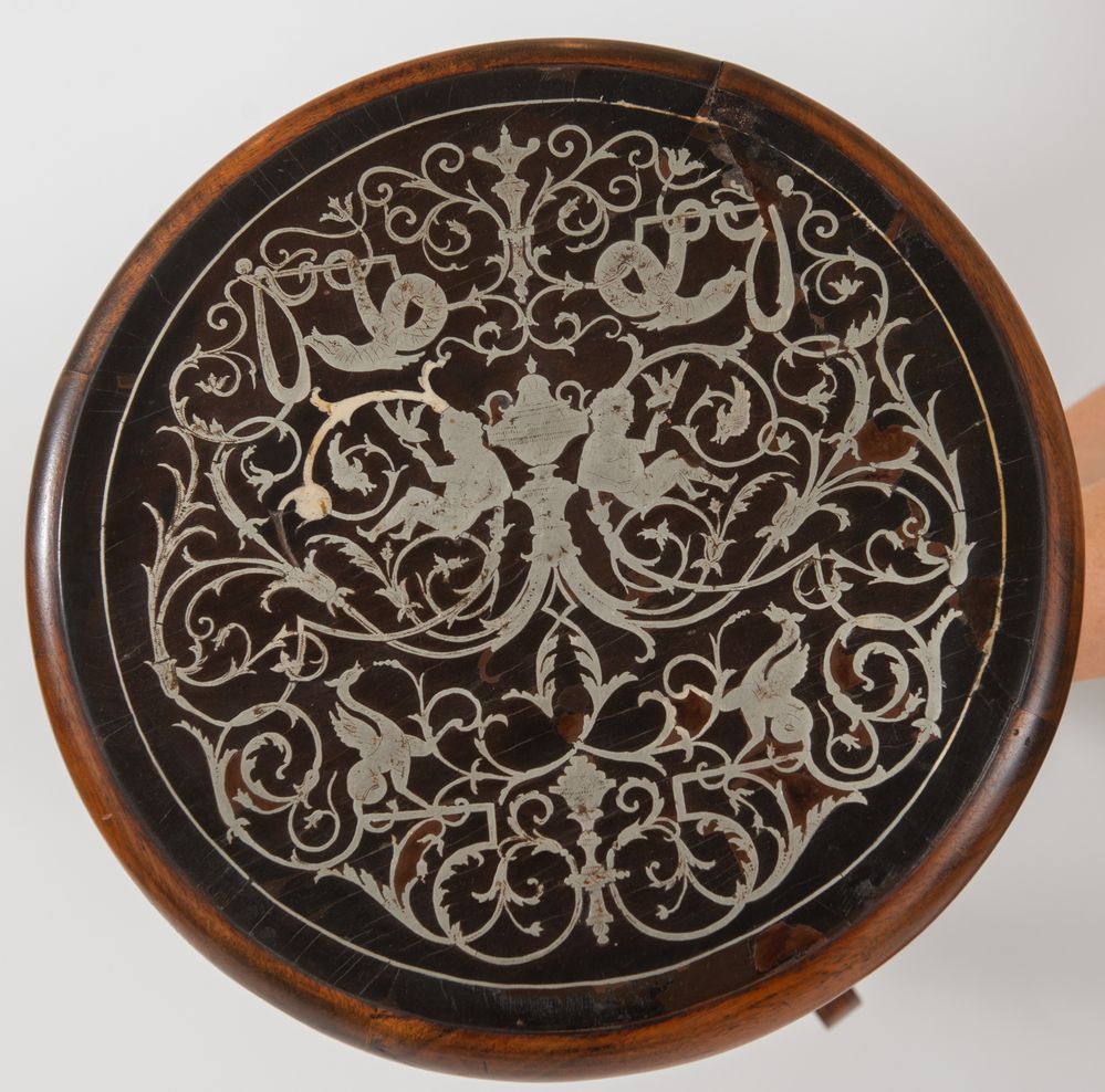 GUERIDON lastronato in peltro e palissandro. Fine del XIX secolo. Francia. Cm...
