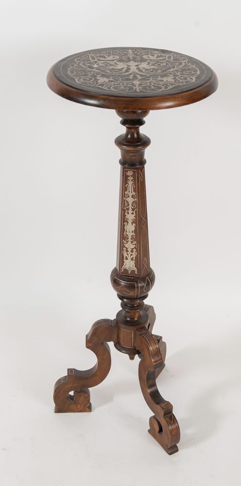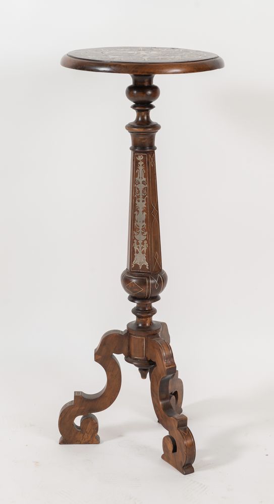 GUERIDON lastronato in peltro e palissandro. Fine del XIX secolo. Francia. Cm 93xØ cm 36.