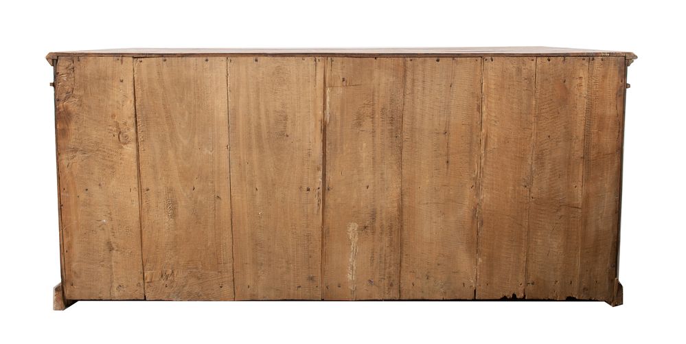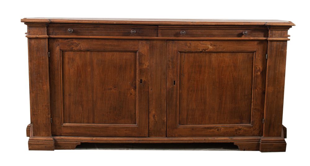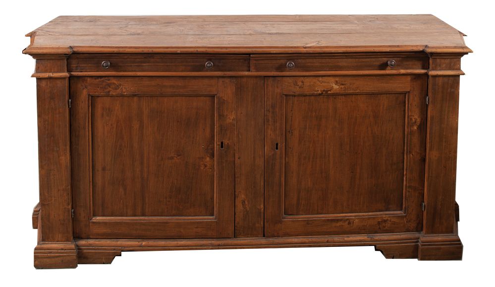 CREDENZA in pioppo con due ante e due cassetti sul fronte, di linea spezzata. Bologna, metà del XVIII secolo. Cm 100x223x67.