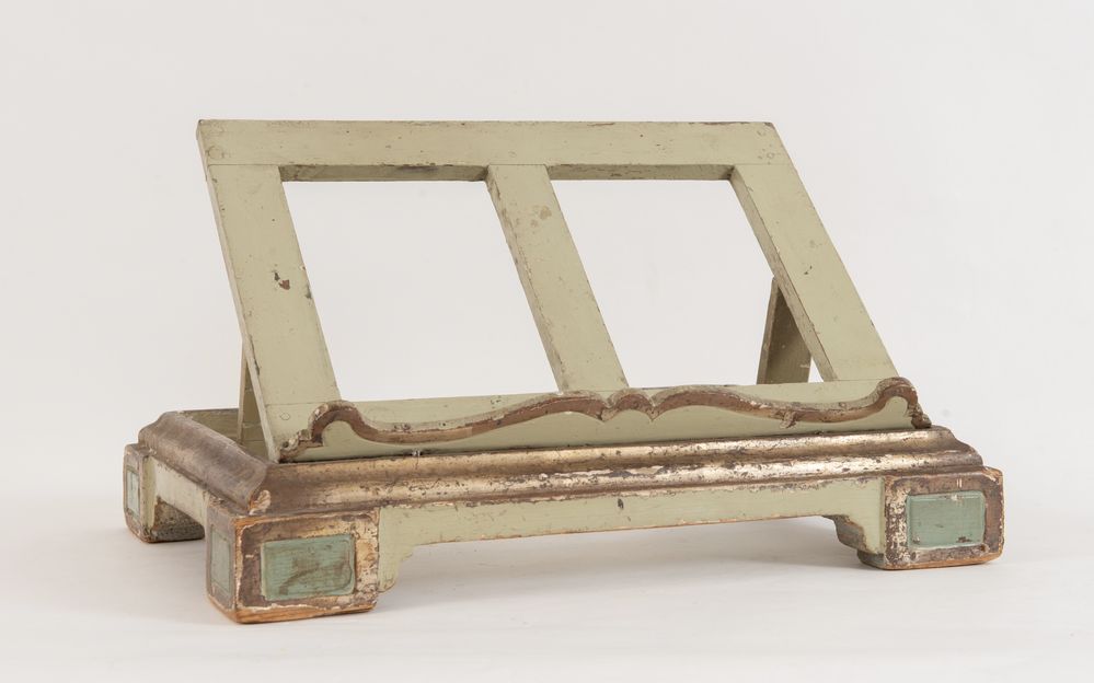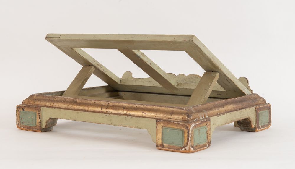 Lot 235 | LEGGIO in legno intagliato laccato e dorato a mecca. Emilia, XVIII secolo. Cm...