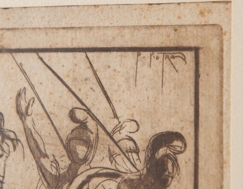 PIETRO PIETRA "Senza titolo". Puntasecca su carta. Cm 15x18. Opera firmata in alto a destra P.Pietra.