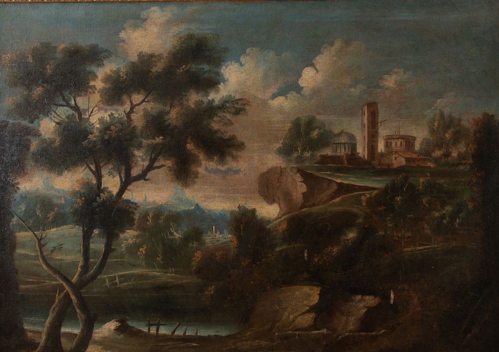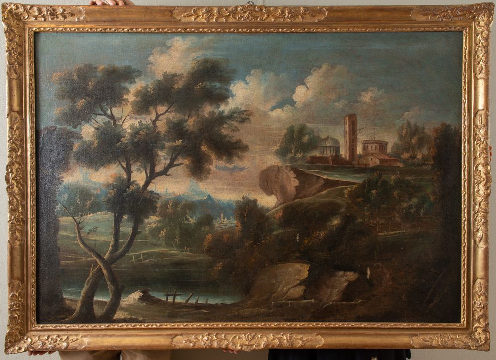 Maestro del XVIII secolo “Paesaggio”. Olio su tela. Cm 92x132,5